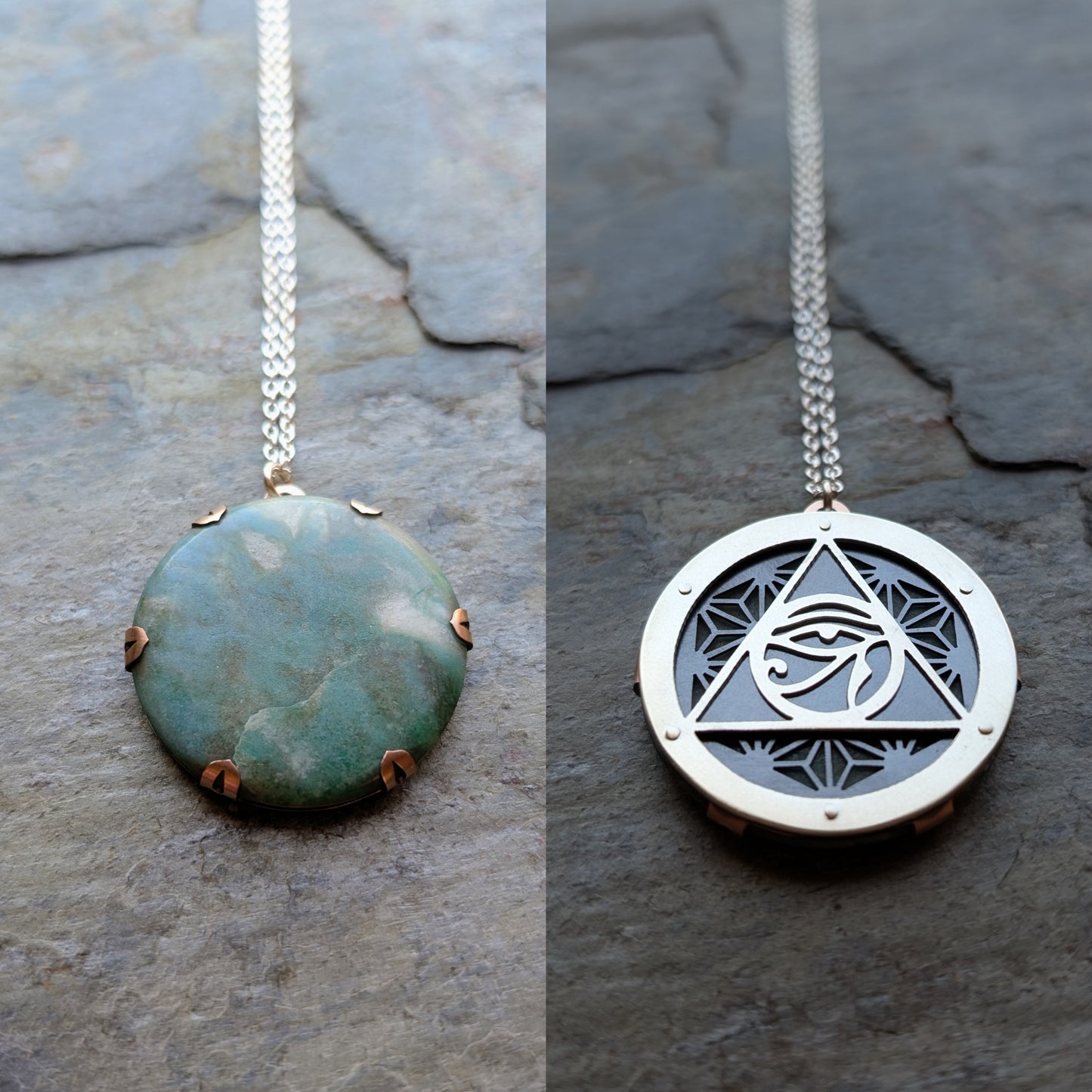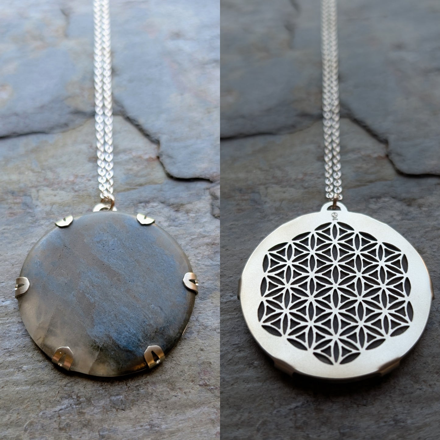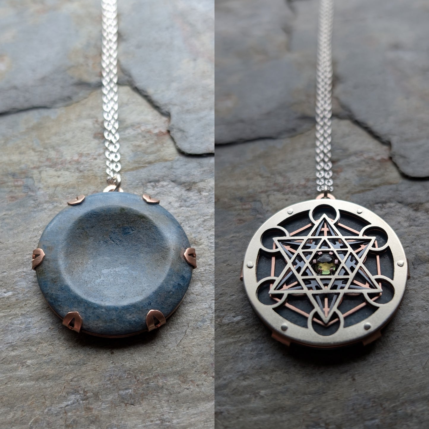 Blue Aotea & Moldavite Metatron's Cube Pendant