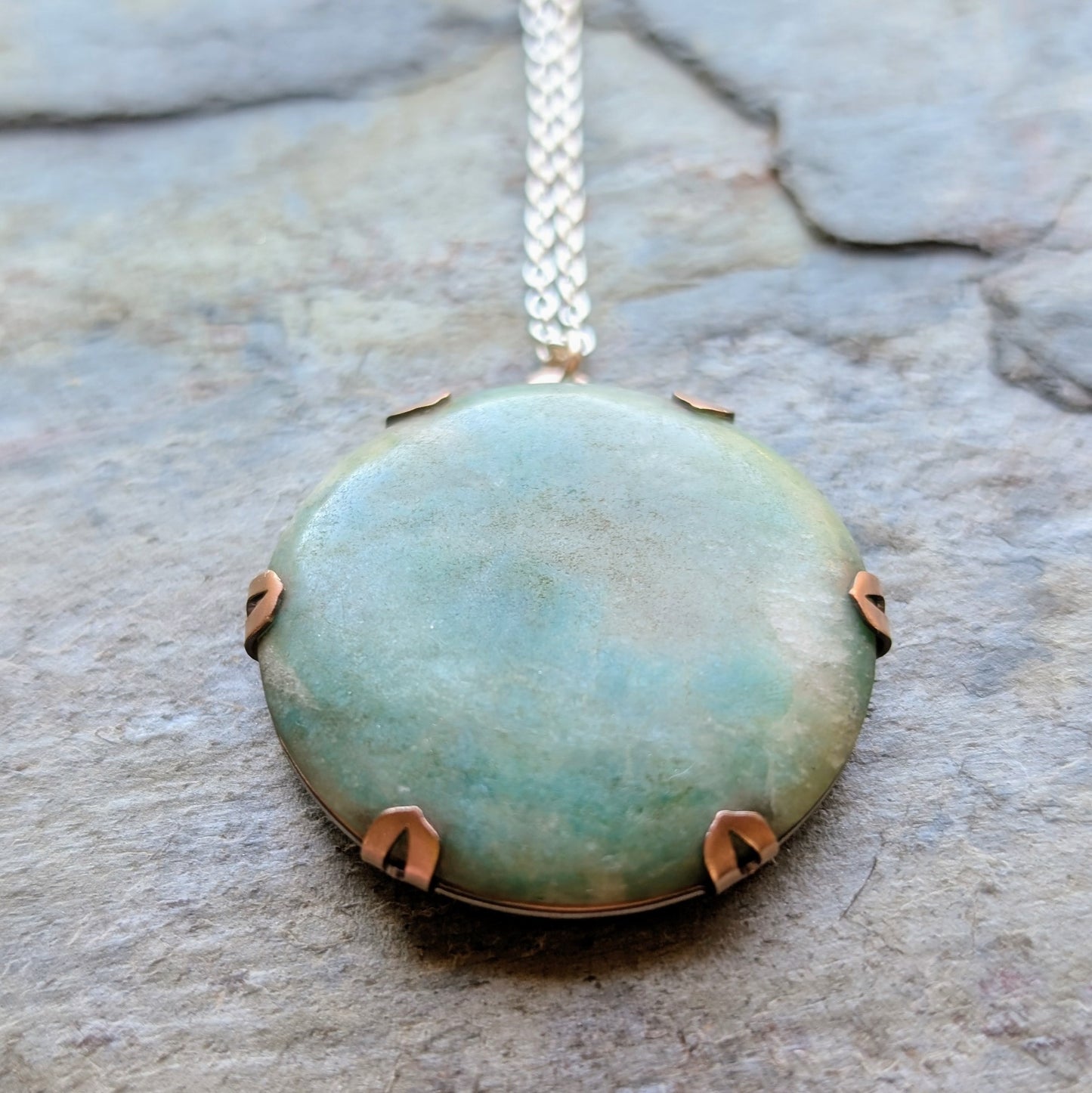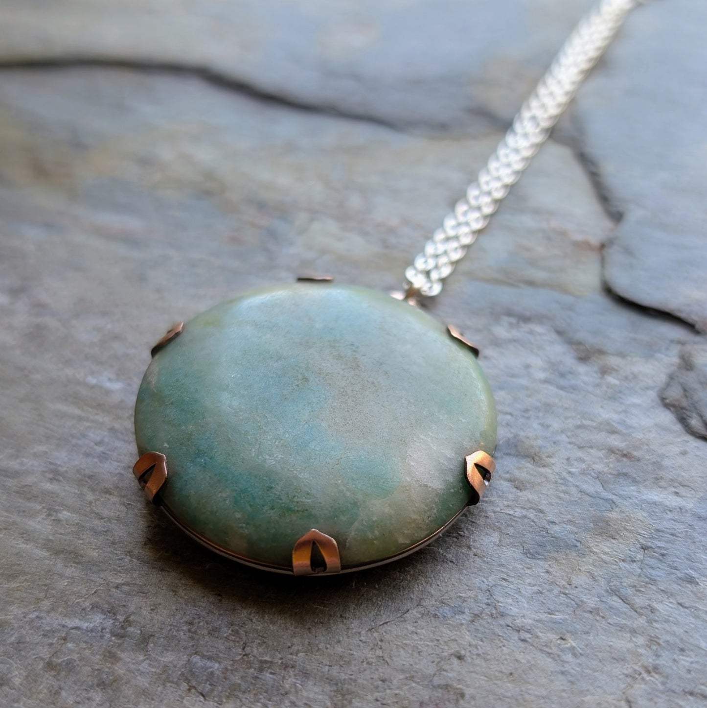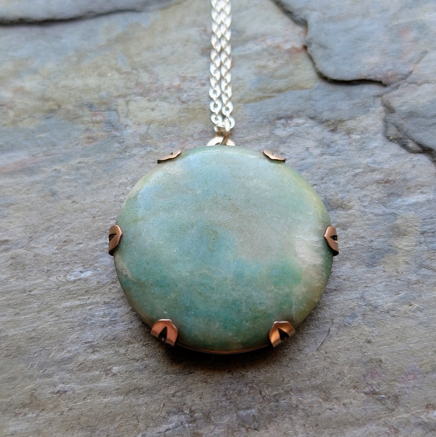 - Material: handcut sterling silver, oxidised copper, moonstone and Aotea cabochon