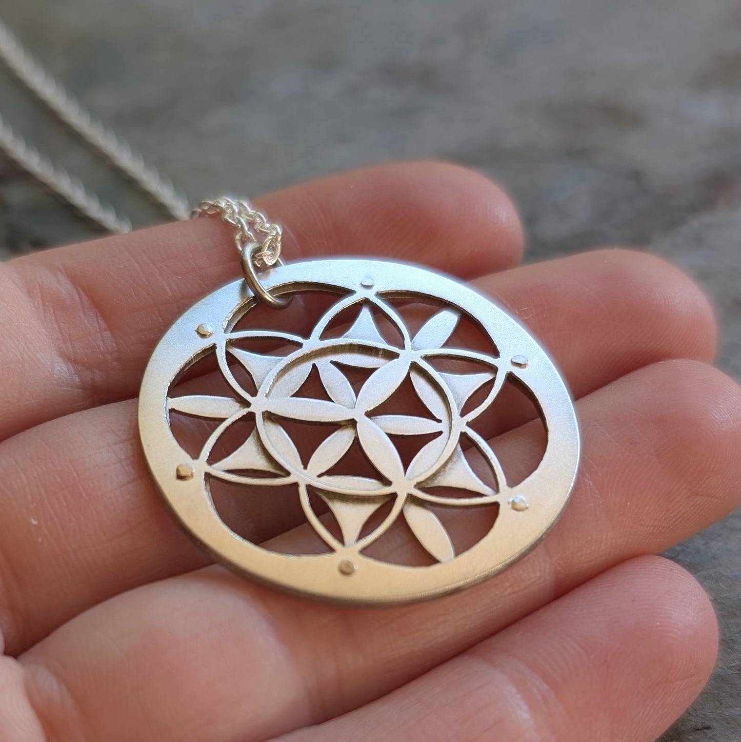 Double Layer Silver Flower of Life Pendant