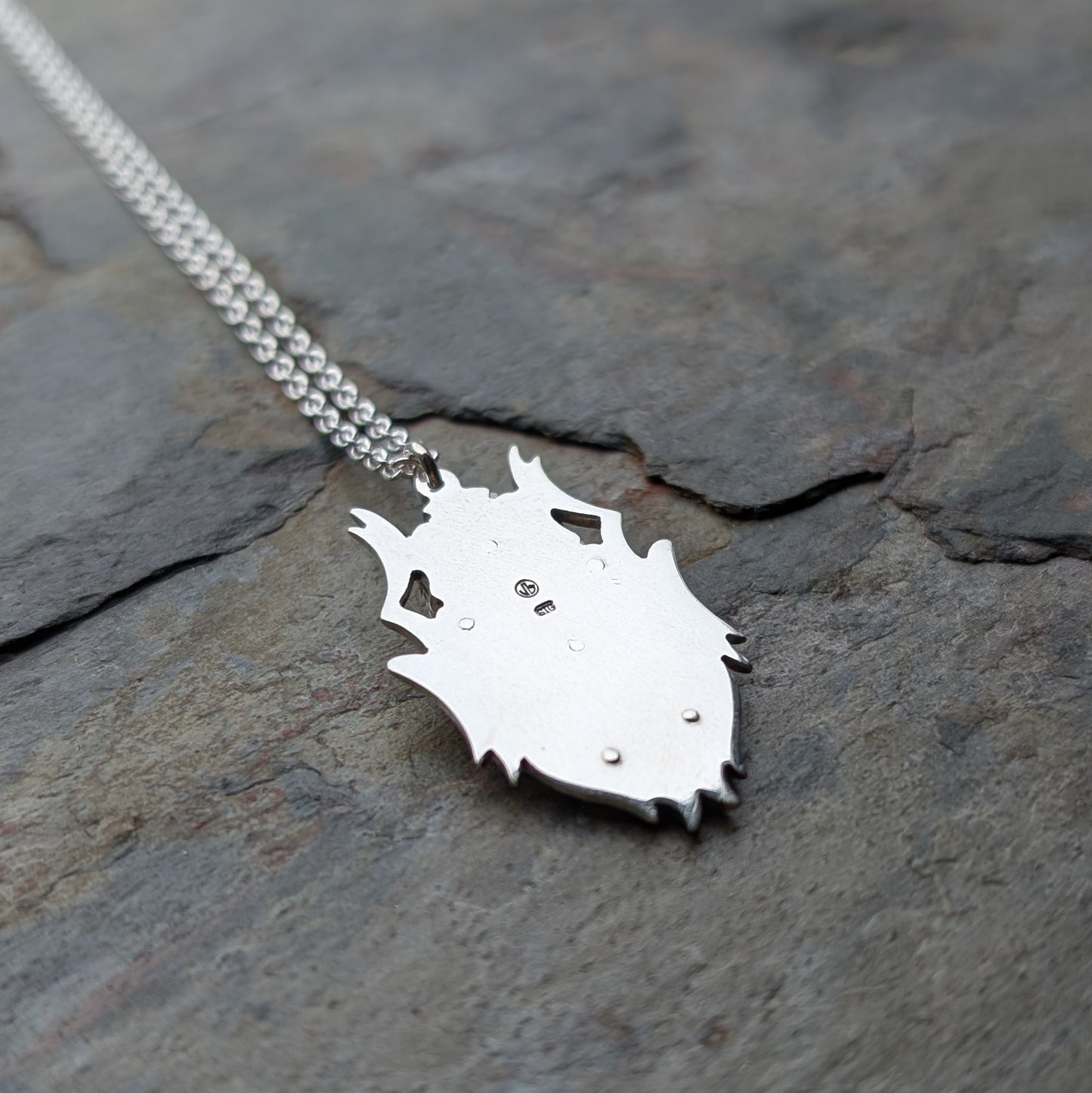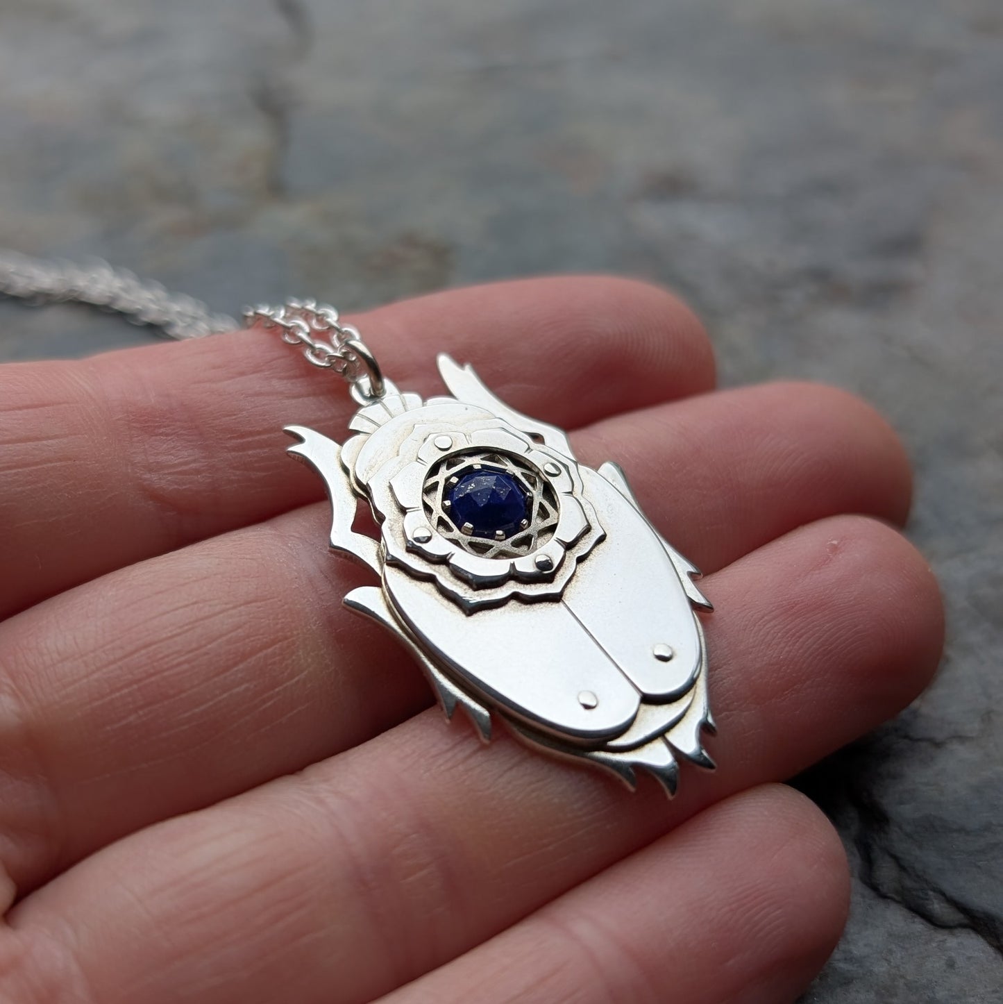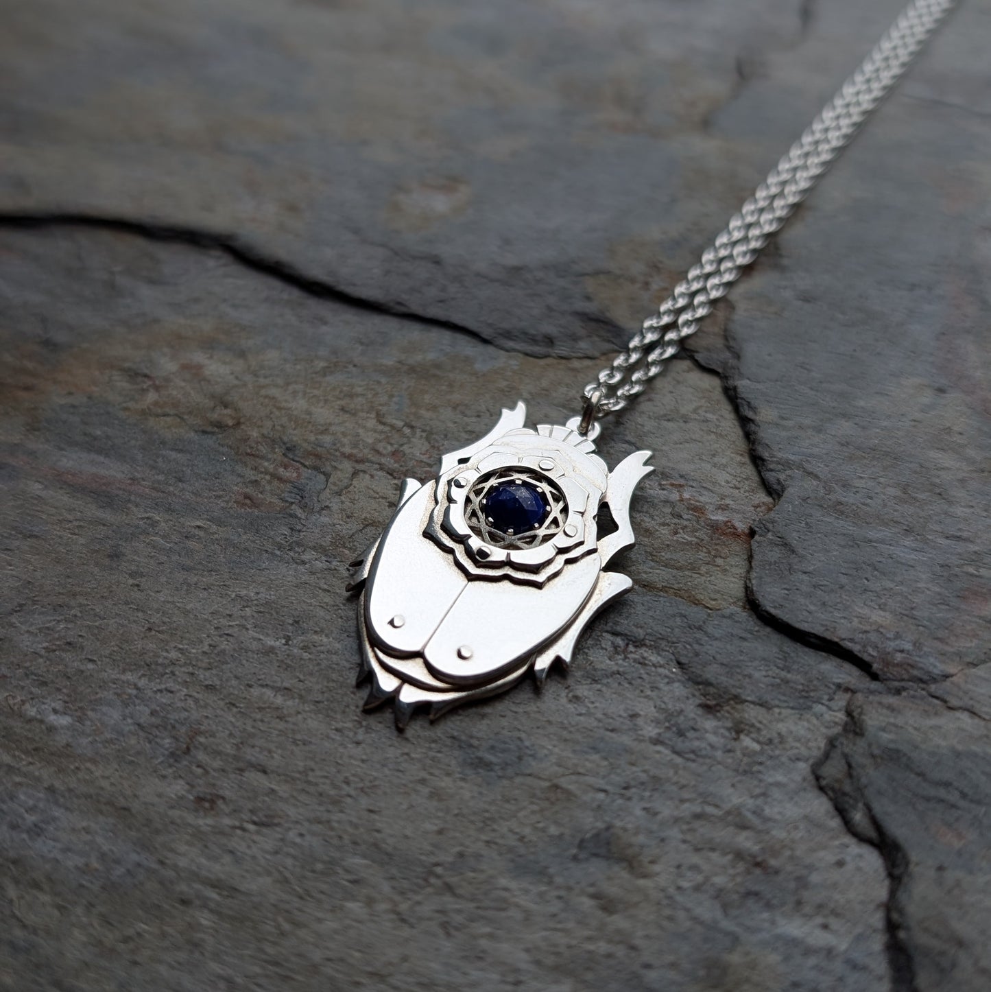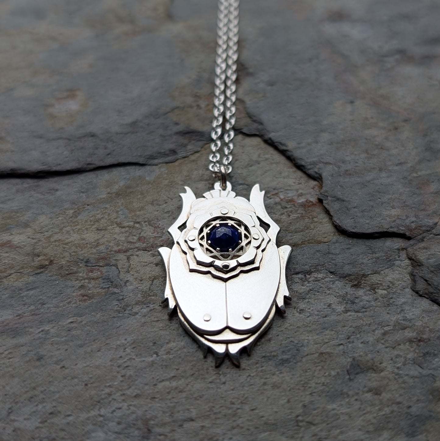 Inspired by ancient Egyptian mythology, this Scarab pendant honors the scarab beetle as a symbol of creation and transformation. The scarab was closely linked to the sun-god Khepri, who was believed to roll the sun across the sky each day representing the eternal cycle of renewal.