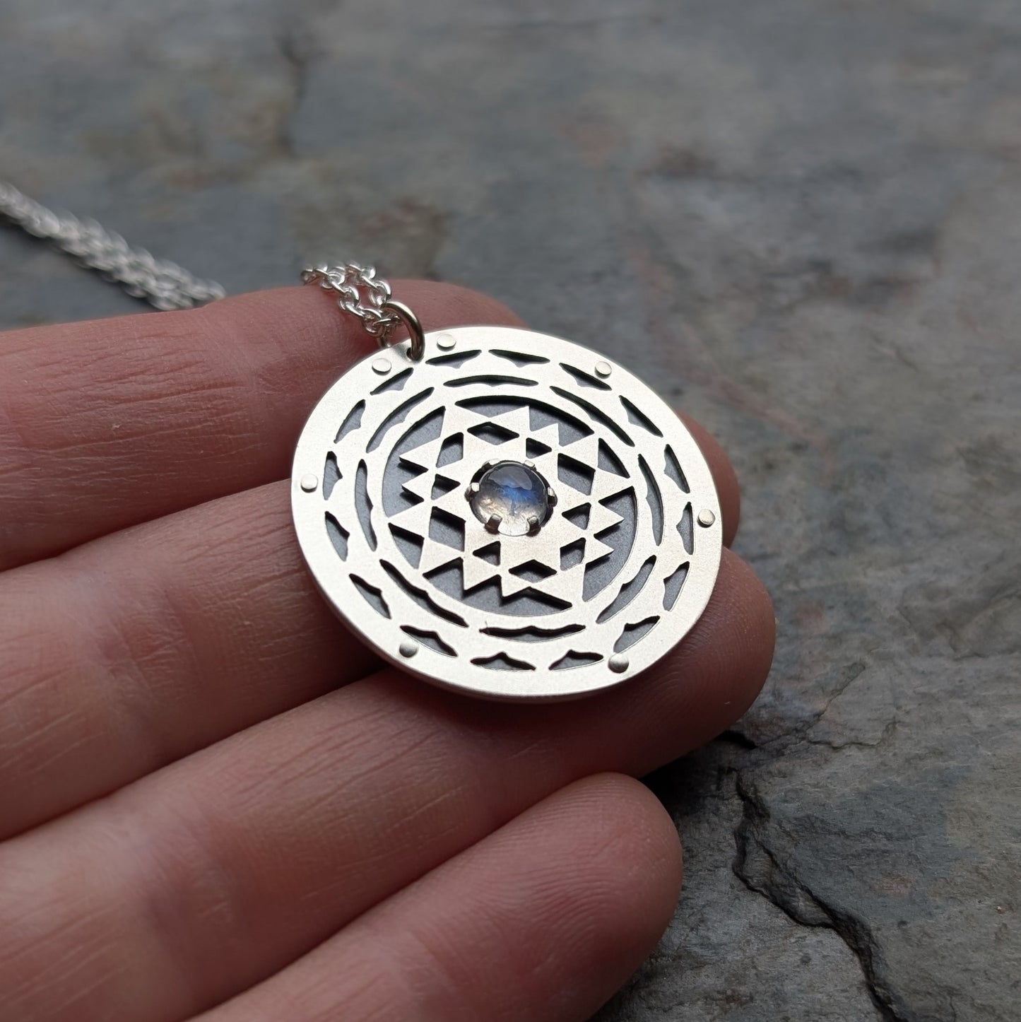 - Material: handcut sterling silver, oxidised silver and your choice of gemstone.