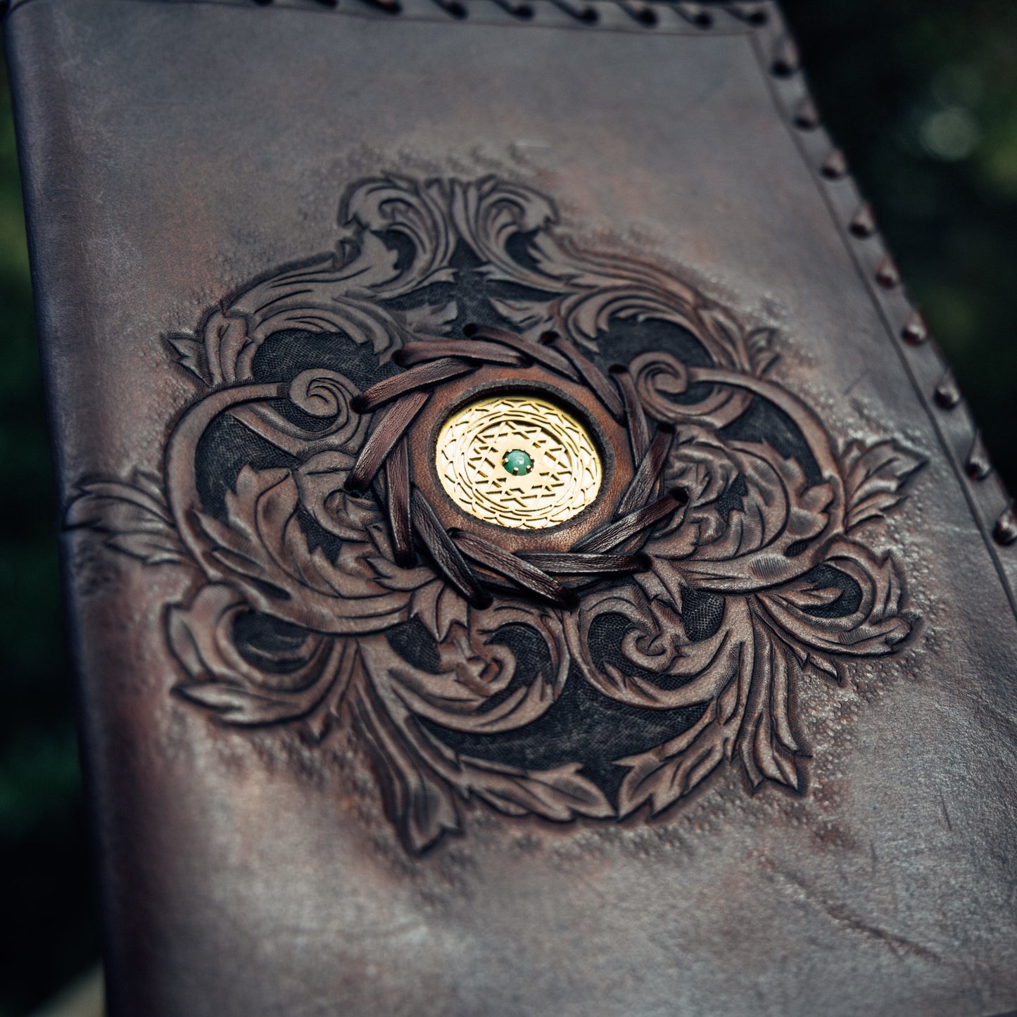 Journal cover is created and handcarved by talented leather worker Kay Buchanan.