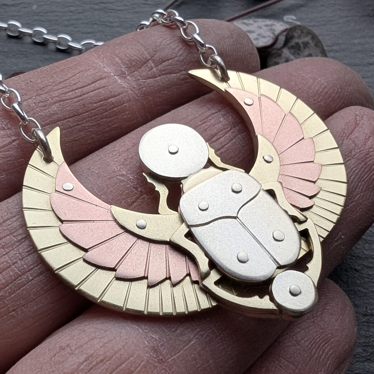 Inspired by ancient Egyptian mythology, this Scarab pendant honors the scarab beetle as a symbol of creation and transformation. The scarab was closely linked to the sun-god Khepri, who was believed to roll the sun across the sky each day representing the eternal cycle of renewal.