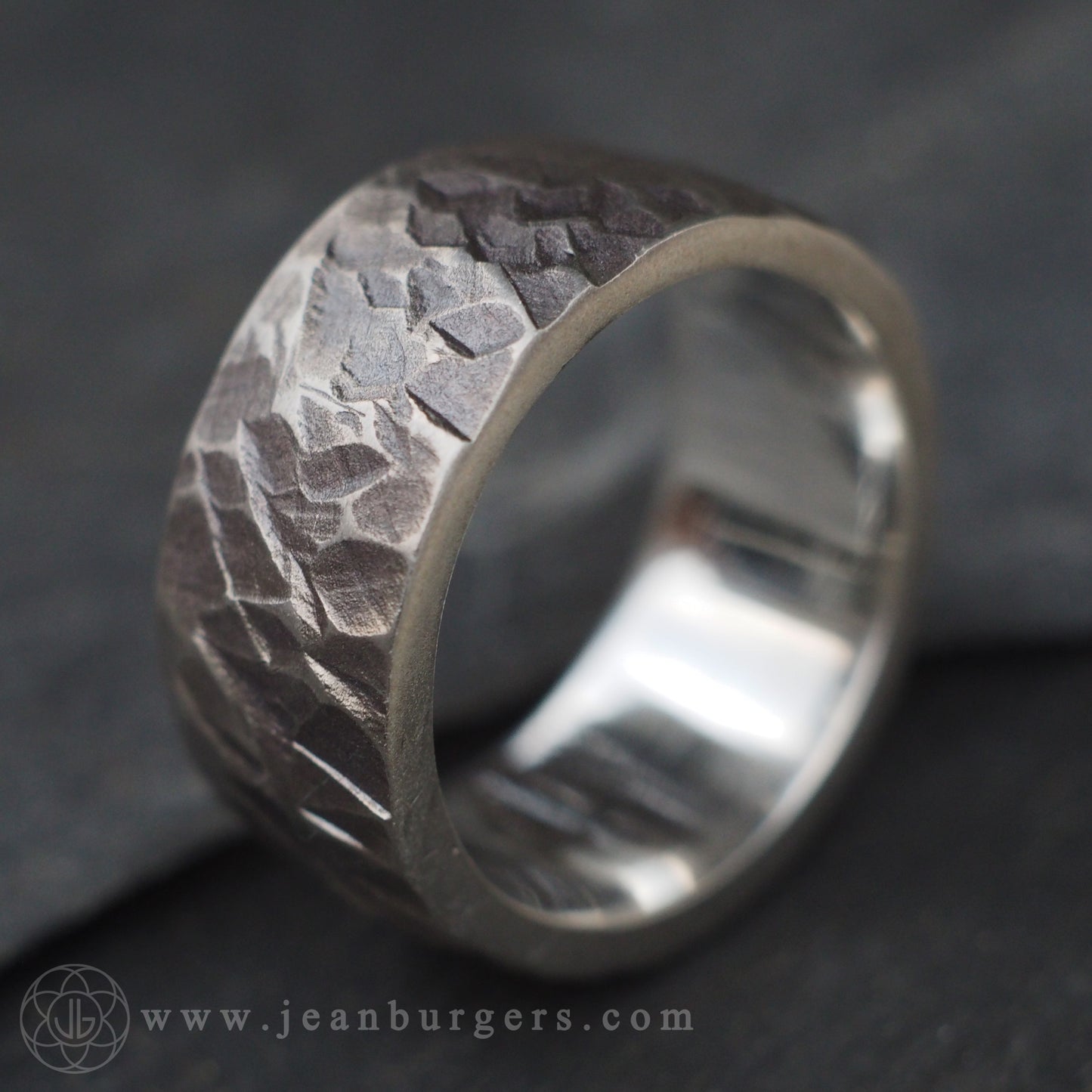 This textured Glacier Ring has been cast in solid sterling silver. I have oxidised it and sanded back the high points, to bring out the details. This is the larger version, the smaller version is available in a separate listing.