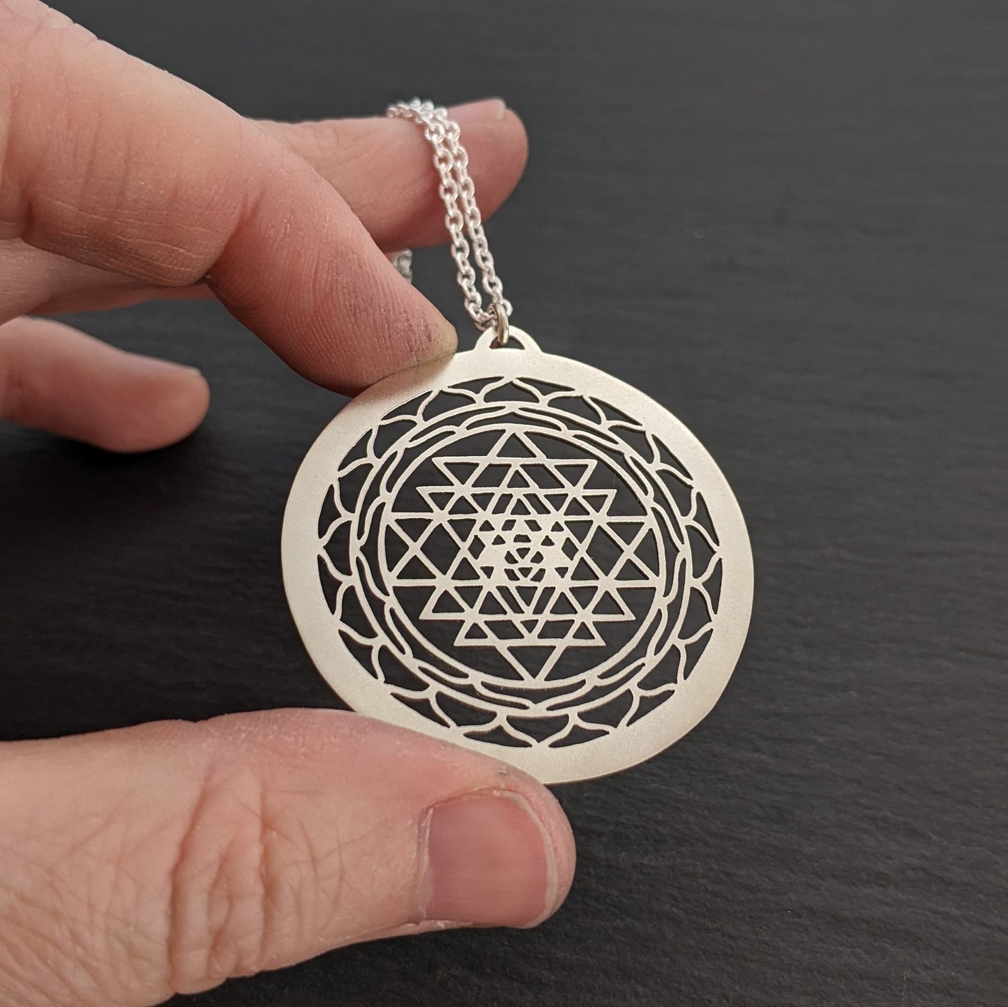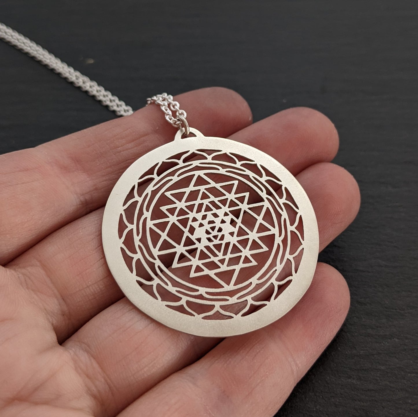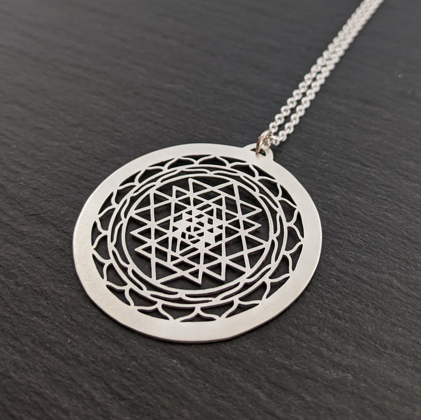 The Sri Yantra is an ancient symbol of interlocking triangles that represent the union of the divine masculine and feminine, embodying balance and harmony. It is often used as a tool for meditation, and a path toward spiritual enlightenment.