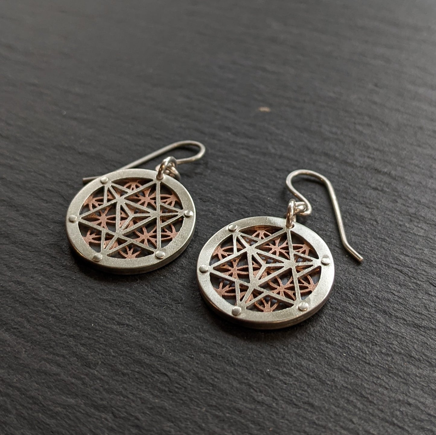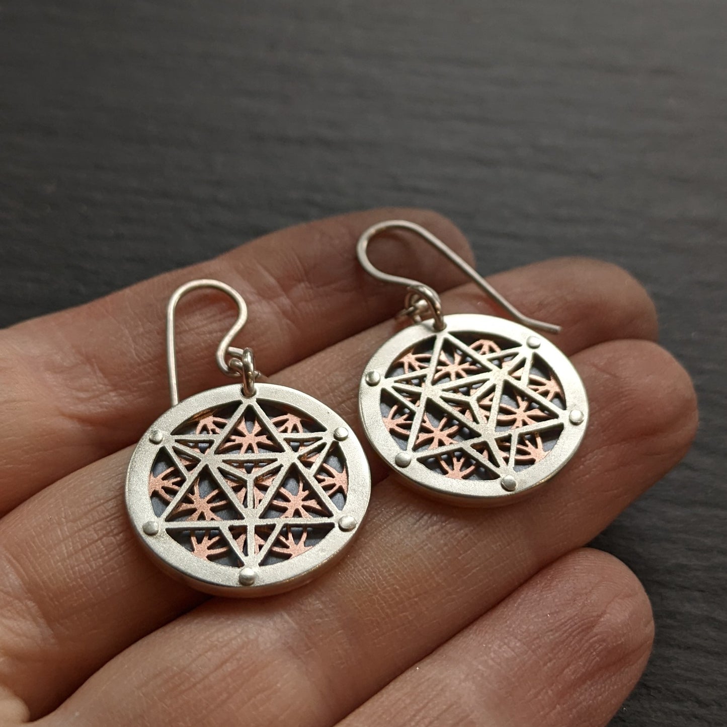 This pendant combines the Star Tetrahedron and the Flower of Life, symbols found in sacred geometry. The Star Tetrahedron (also known as the Merkaba) represents balance and unity, while the Flower of Life is a symbol of creation, mathematically reflecting the patterns of existence itself. Together, they form a visual expression of harmony, energy, and interconnectedness.